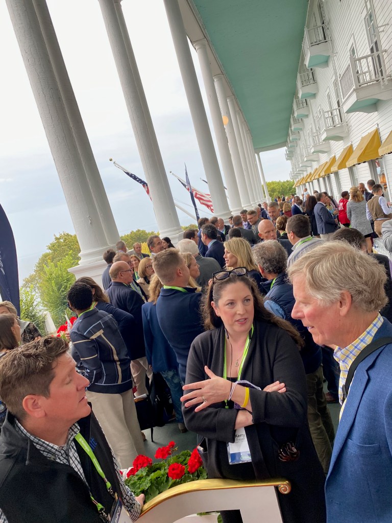 Understanding the Mackinac Policy Conference begins with taking a look at some of the sessions, which this year included topics such as “Racial Equity in the Workplace,” “What Michiganders Want: Investments in Children,” and “Economy, Growth and Sustainable Finance.” And there are press conferences, and major initiatives launched, announcements made, sometimes in grand style, as in 2019 when Governor Gretchen Whitmer, surrounded by Republican and Democratic state legislators signed the bipartisan no-fault insurance bill into law on the porch of the Grand Hotel.